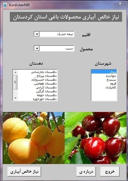 | نمایی از محیط نرم افزار برآورد نیاز آبی محصولات باغی در استان کردستان |